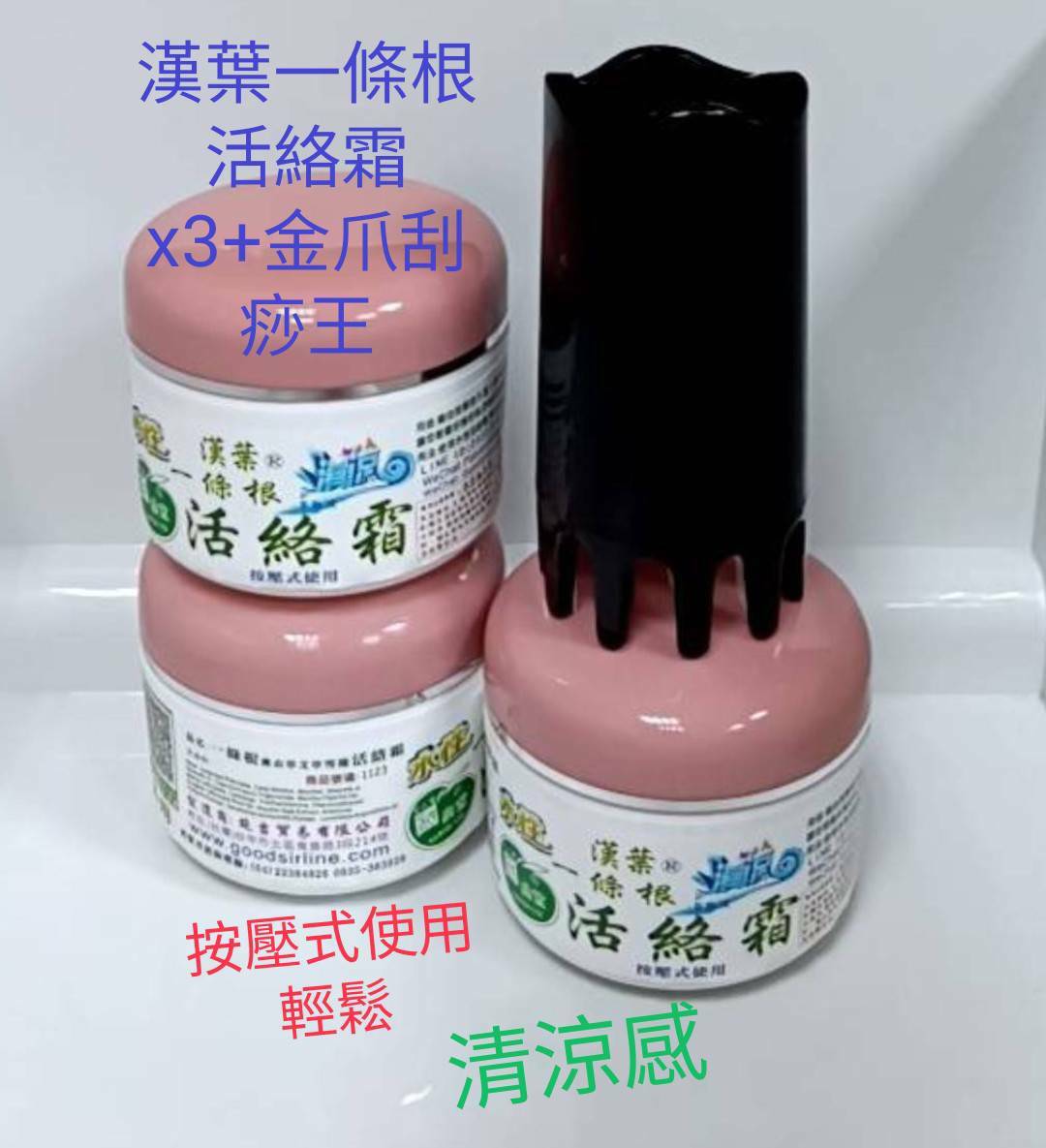 延吉貿易-國壽堂]NO:1123漢葉一條根活絡霜60公克x3瓶+金爪刮痧王(1隻)(水性清涼淡綠如圖示){國壽堂-延吉貿易}