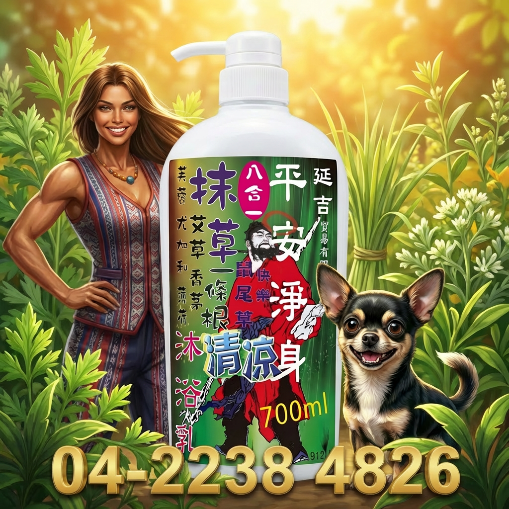 延吉 抹草.艾草.香茅.快樂鼠尾草.一條根.芙蓉.尤加利.薄荷七合一升級八合一清涼沐浴乳700ml (cool) 平安淨身沐浴乳 ITEM NO:91211